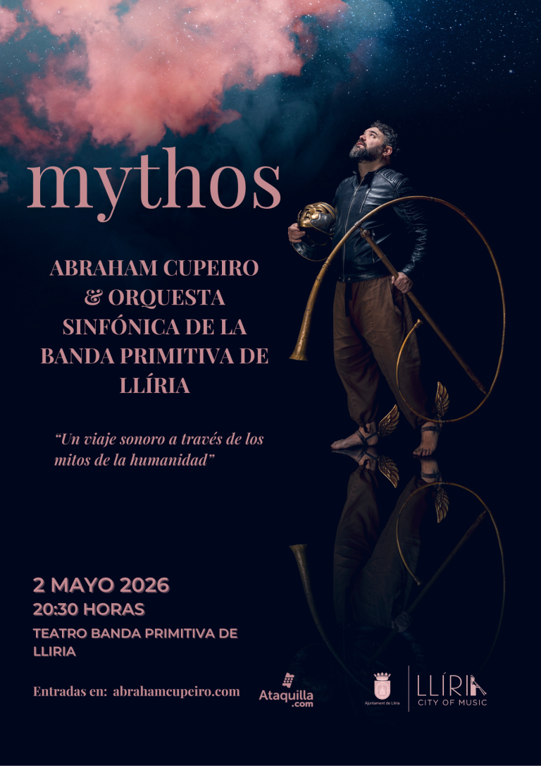 Interpretando el programa Mythos, Abraham Cupeiro tocará junto a la Banda Primitiva de Llíria. Si no pudiste ver a Cupeiro en Llíria anteriormente; Ven a disfrutar de su increíble música